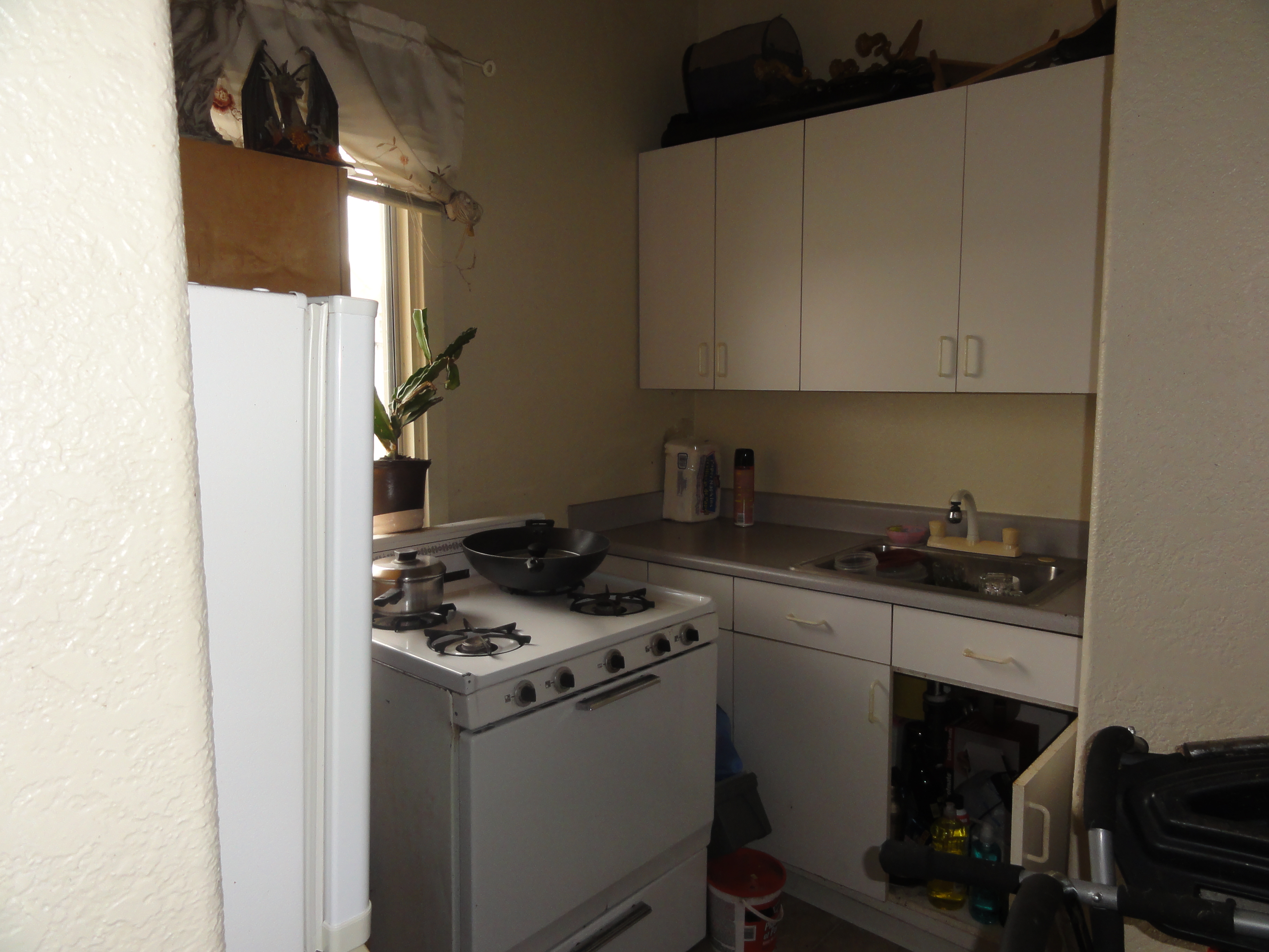 The original developer in the 1920s divided the each unit into small rooms: kitchen, dining, living, and bedroom The decades old interior plaster and aluminum window dated the units. See below.