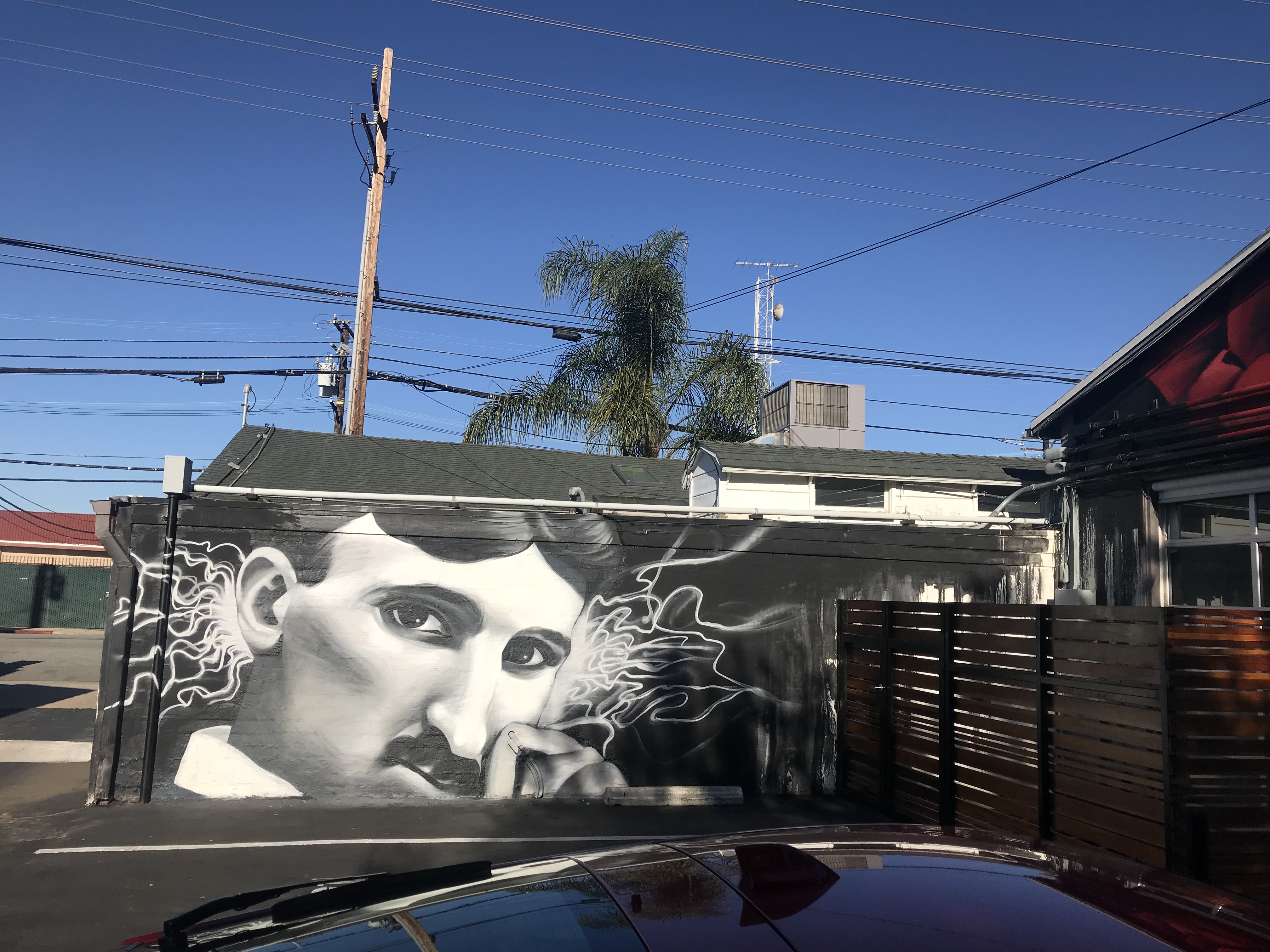 Photo Dec 13, 9 42 50 AM Published December 17, 2018 at 4032 × 3024 in PMI’s Digital Bungalows in Santa Monica Pays Homage to Heidi Lamarr and Nicolas Tesla in Two New Murals Nicolas Tesla